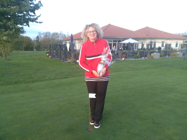 Während des Saisonausklang-Turnieres am 26.10.2019, bei strahlendem Sonnenschein, aber auch böigem Gegenwind von um die 50 km/h, fand Cornelias Ball nach dem Abschlag auf der 10 seinen Weg direkt in das Loch. Im Rahmen der Siegerehrung ließ die immer noch überraschte Spielerin es sich nehmen mit den Teilnehmer*innen des Turniers ihren Kunstschlag mit einer Runde Sekt für alle zu feiern und wurde von Geschäftsführer Walter Lukasch zu dem geehrt.